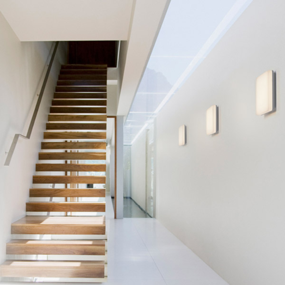 Die runden, quadratischen und ringförmigen Innenleuchten sind jeweils in diversen Baugrößen und Lichtleistungen erhältlich. Zwei Lichtfarben ermöglichen es, verschiedenen Anforderungen in Innenräumen gerecht zu werden. Für den Einsatz in öffentlichen Wohnbereichen wie Fluren und Treppenhäusern oder in Krankenhäusern, Schulen und Kindergärten empfehlen sich die Ausführungen mit 4.000 K. Im privaten Wohnbereich dagegen sorgen die Versionen mit 3.000 K für eine behagliche Atmosphäre.
